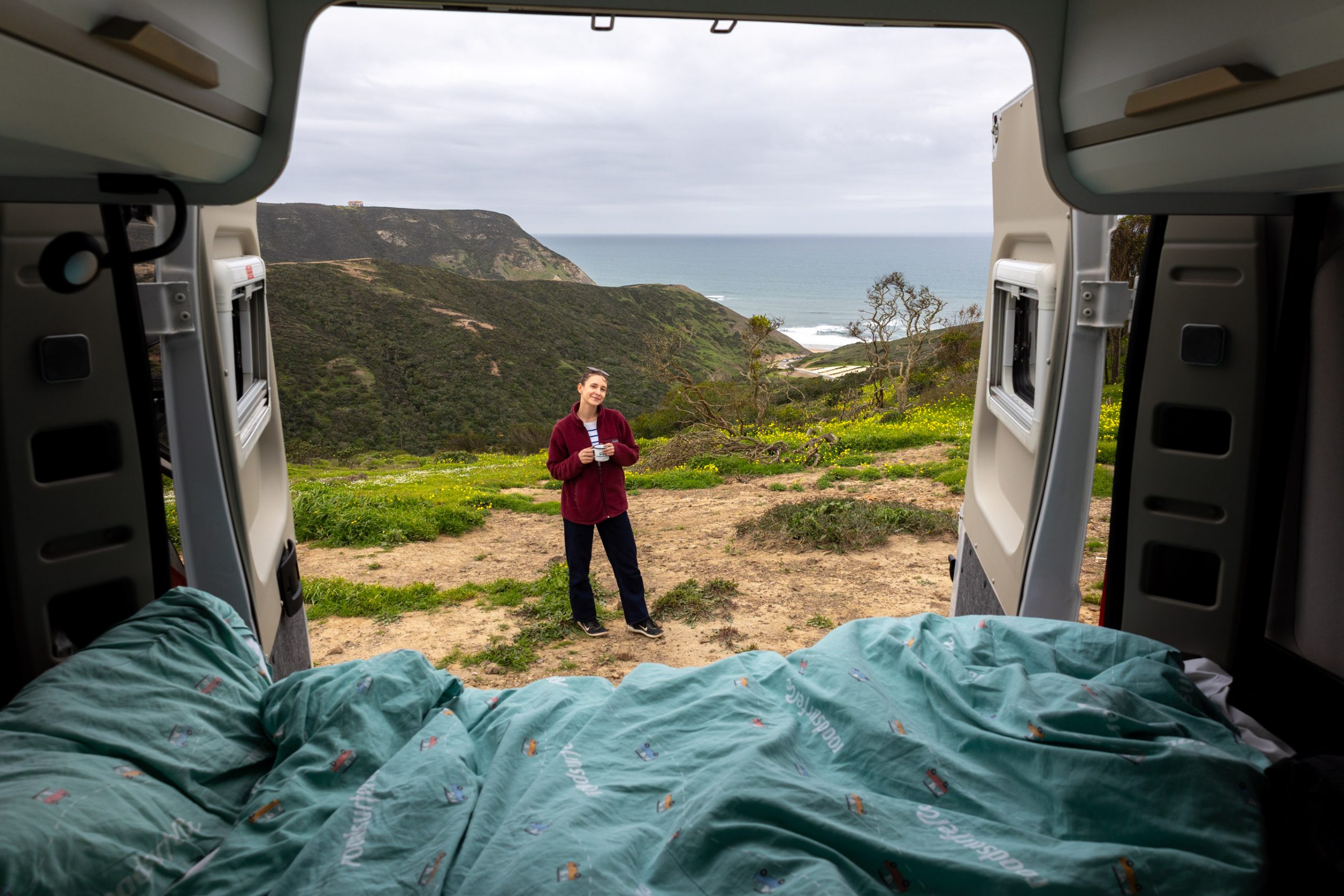 Aber das heißt nicht, dass du komplett auf Freiheit verzichten muss. Tagsüber kannst du problemlos direkt am Meer anhalten, eine Tasse Kaffee trinken oder die Aussicht genießen. Zum Übernachten gibt es dann drei Möglichkeiten: